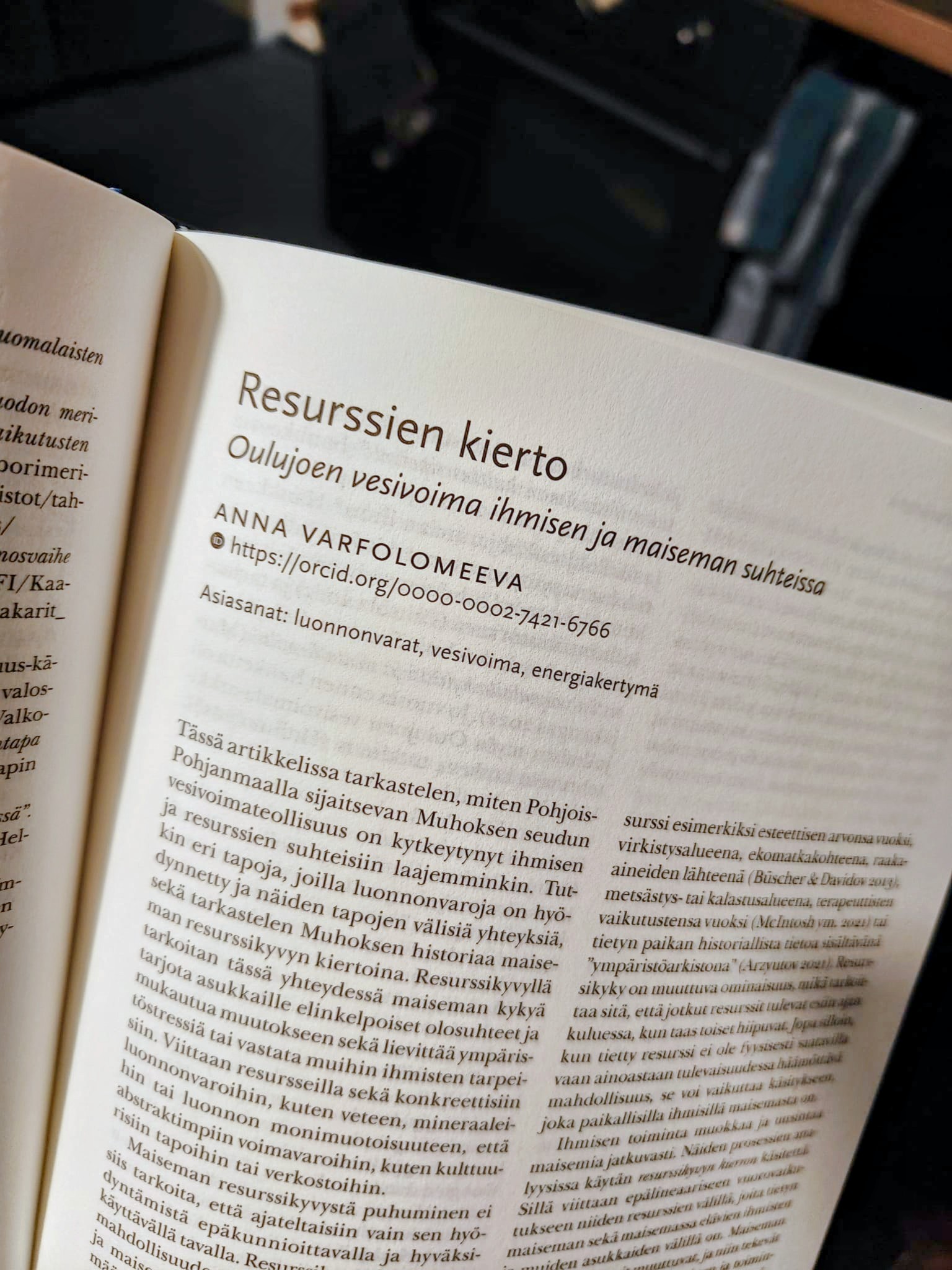 My first publication in Finnish came out in November. This article is one of the outcomes of my Forming Resourcescape project, which was supported by an expenditure grant from the Finnish Cultural Foundation in 2024. The edited volume is titled, in English, Turns and Twists – Cultural Environmental Transformations in the North.