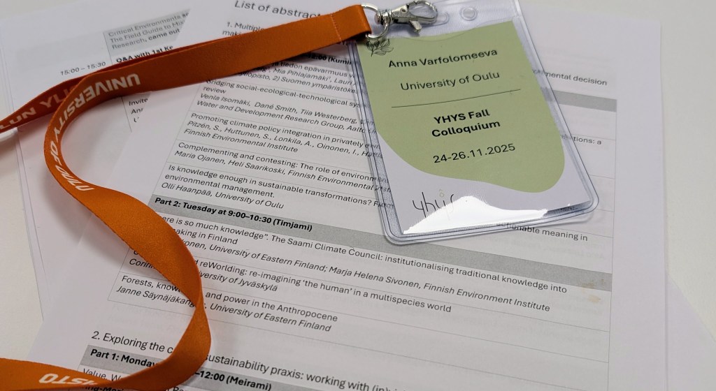 Last week, Oulu hosted the annual Fall colloquium of the Finnish Society for Environmental Social Science (YHYS). This was my first experience with YHYS, and although I had only just recovered from a rather fierce virus and wasn’t at my best, I was quickly drawn in by the colloquium’s vibrant atmosphere. My main sources of inspiration, however, may sound unusual: nothingness, failure, and the absence of words.